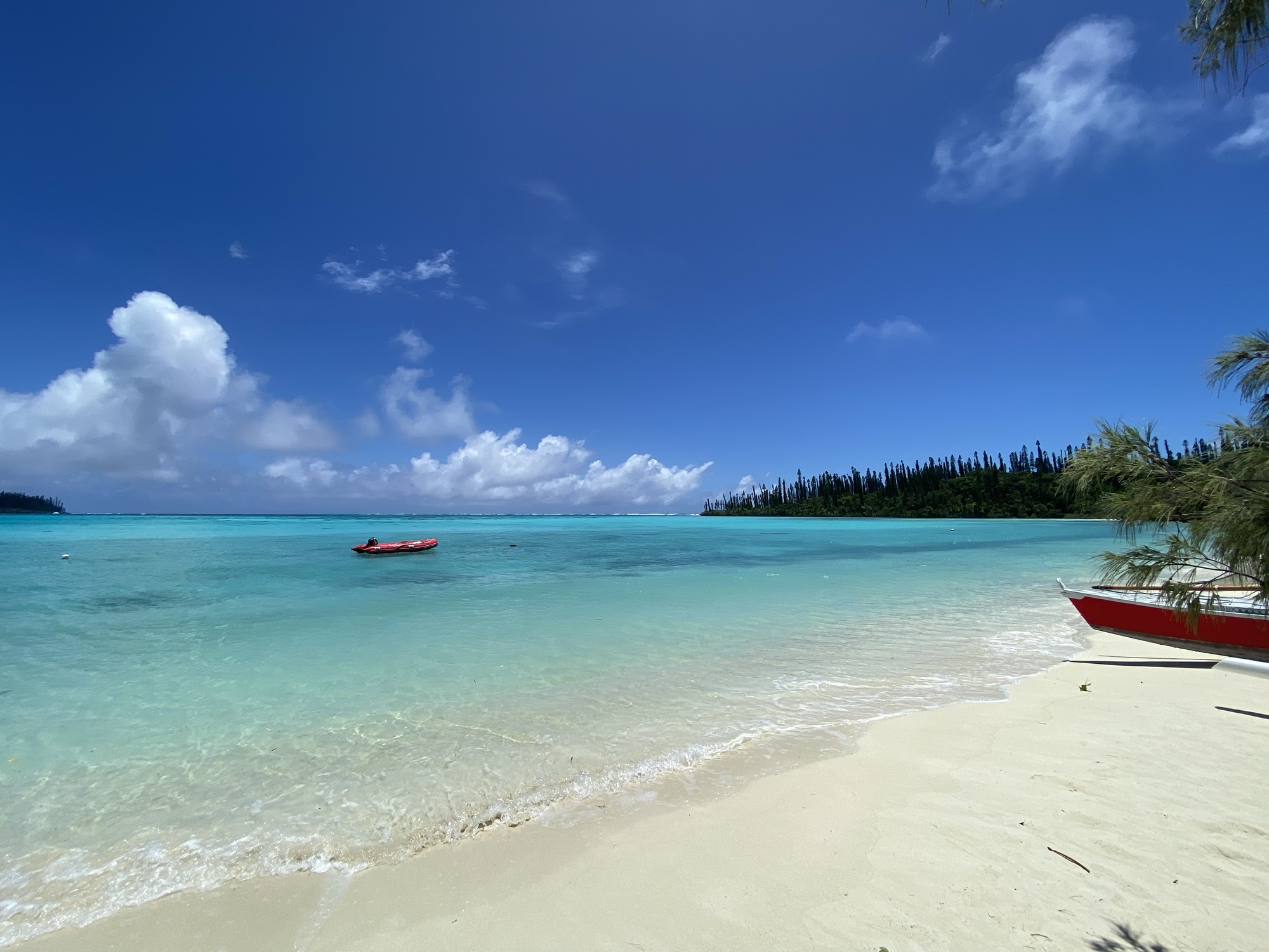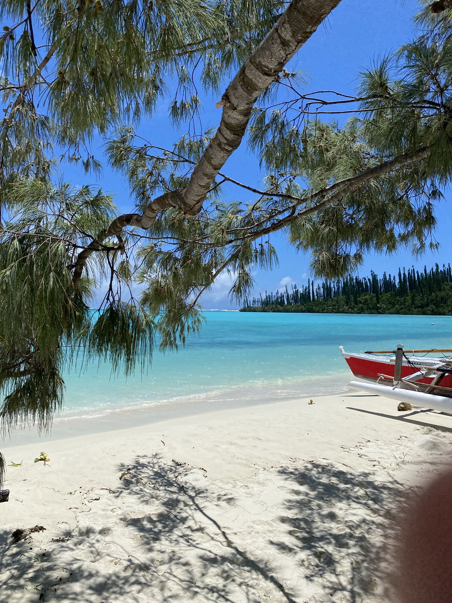 Isle of Pines är en väldigt frodig och grön vacker ö. Där växer flera hundra år gamla exemplar av Araucaria Columnaris, ett inhemskt träd i Nya Kaledonien som till sin form liknar tallar, därav namnet. ”Piscine Naturelle” är en slags naturlig pool som vi vadade i, från ena änden till den andra. Ibland strömt eftersom vi valde fel tid på dygnet.