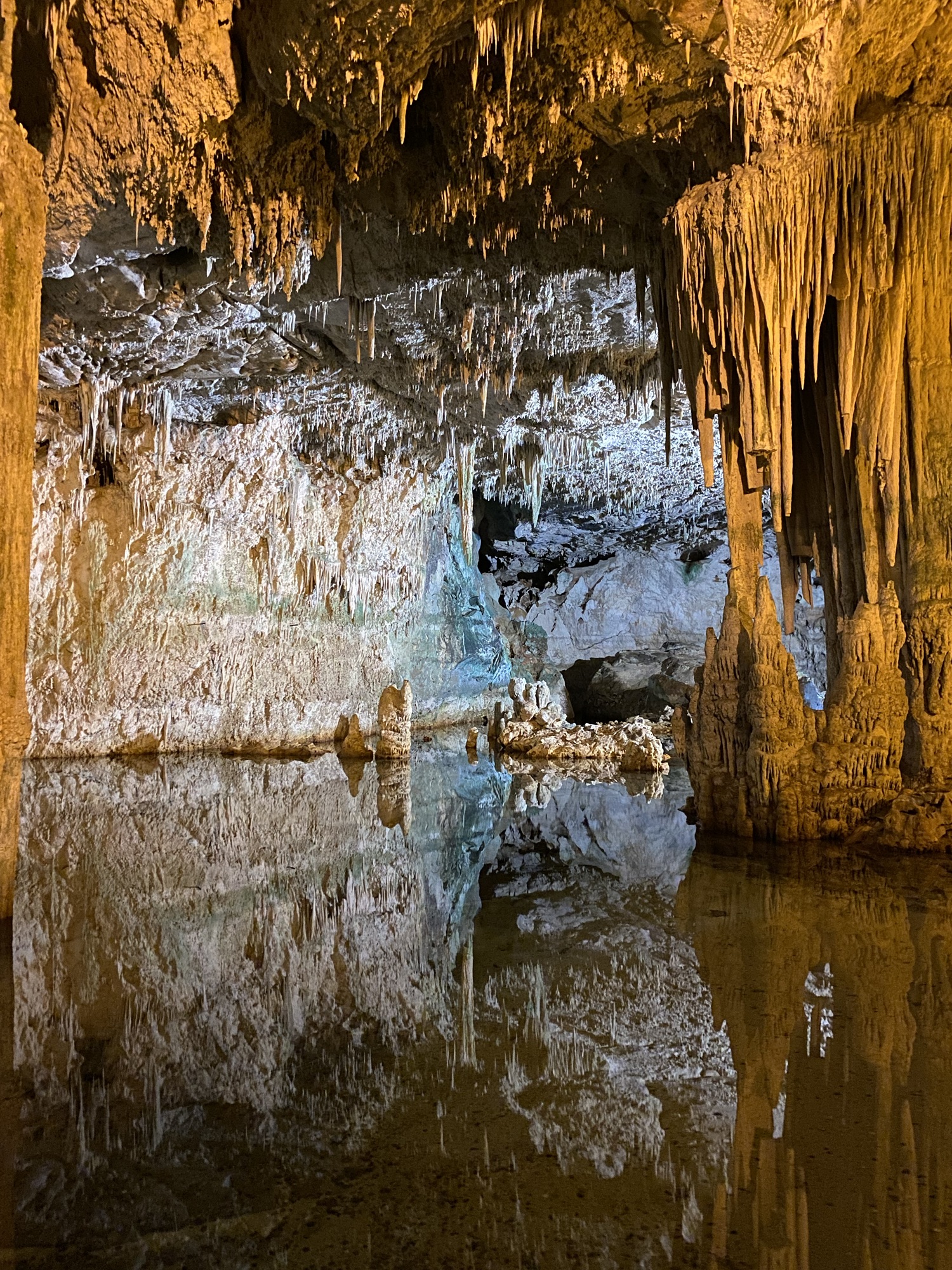 Vi tog också en båttur till Capo Caccia och Neptunus grotta, det vackraste jag sett på länge. Trots att vi var många i grottan så kunde man förnimma en aura av evigheten… 1 cm av kalkstenen har tagit 100 år att formas, den högsta pelaren är 18 m hög, mäktigt!